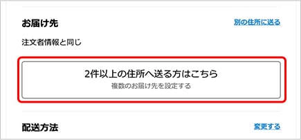 「2件以上の住所へ送る方はこちら(複数のお届け先を設定する) 」を