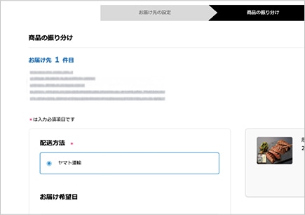 商品の振り分けから、購入数量やお届け日時など配送に関する情報を入力して、