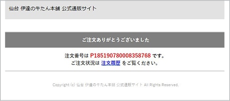 「ご注文ありがとうございました」の画面が表示されましたら、ご注文手続きはすべて完了です。