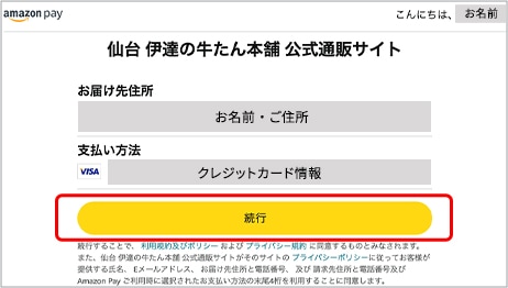 ②画面が切り替わり、Amazonアカウントに登録されている情報が表示されます。 間違いなければ「続行」ボタンをクリックしてください。